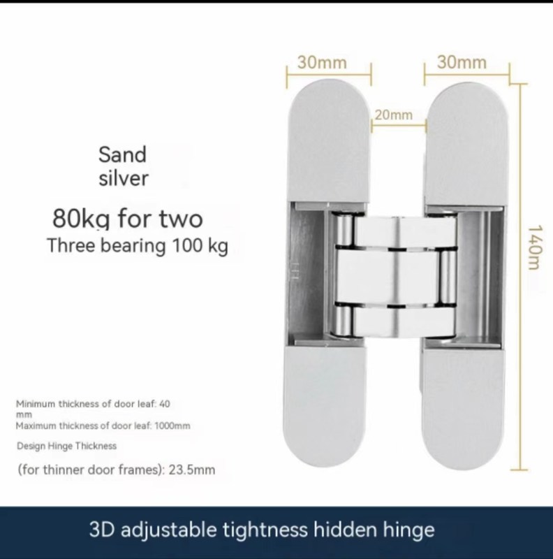 Το Heavy Duty Invisible Hinge είναι ένα 3D-ADJUSTABLE CONCELED HINGE, που σημαίνει ότι μπορεί να ρυθμιστεί σε τρεις διαστάσεις, επιτρέποντας εύκολη εγκατάσταση και προσαρμογή.Η μάντη είναι κατασκευασμένη από υλικά υψηλής ποιότητας.Με μέγιστο φορτίο 120 κιλών, αυτή η μεντεσέτα μπορεί εύκολα να αντέξει ακόμη και τις βαρύτερες πόρτες.